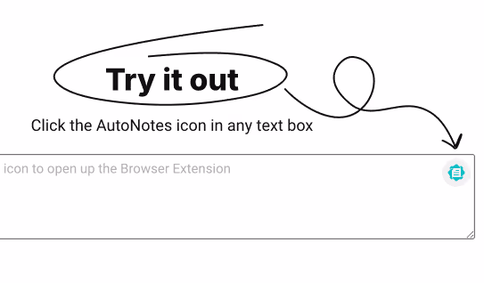 Click into any text box to use the browser extension. When you scroll your mouse to any text box the AutoNotes icon will appear in the top right corner of the text field. Click on it, select a template or note and import it into your text field.