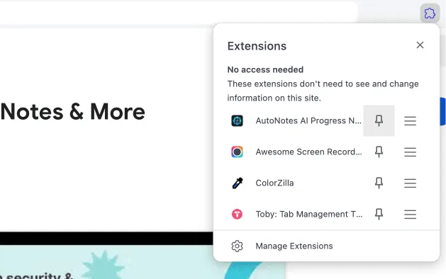 Navigate to the top right corner of your browser and locate the plug-ins icon. Click on this and pin AutoNotes.