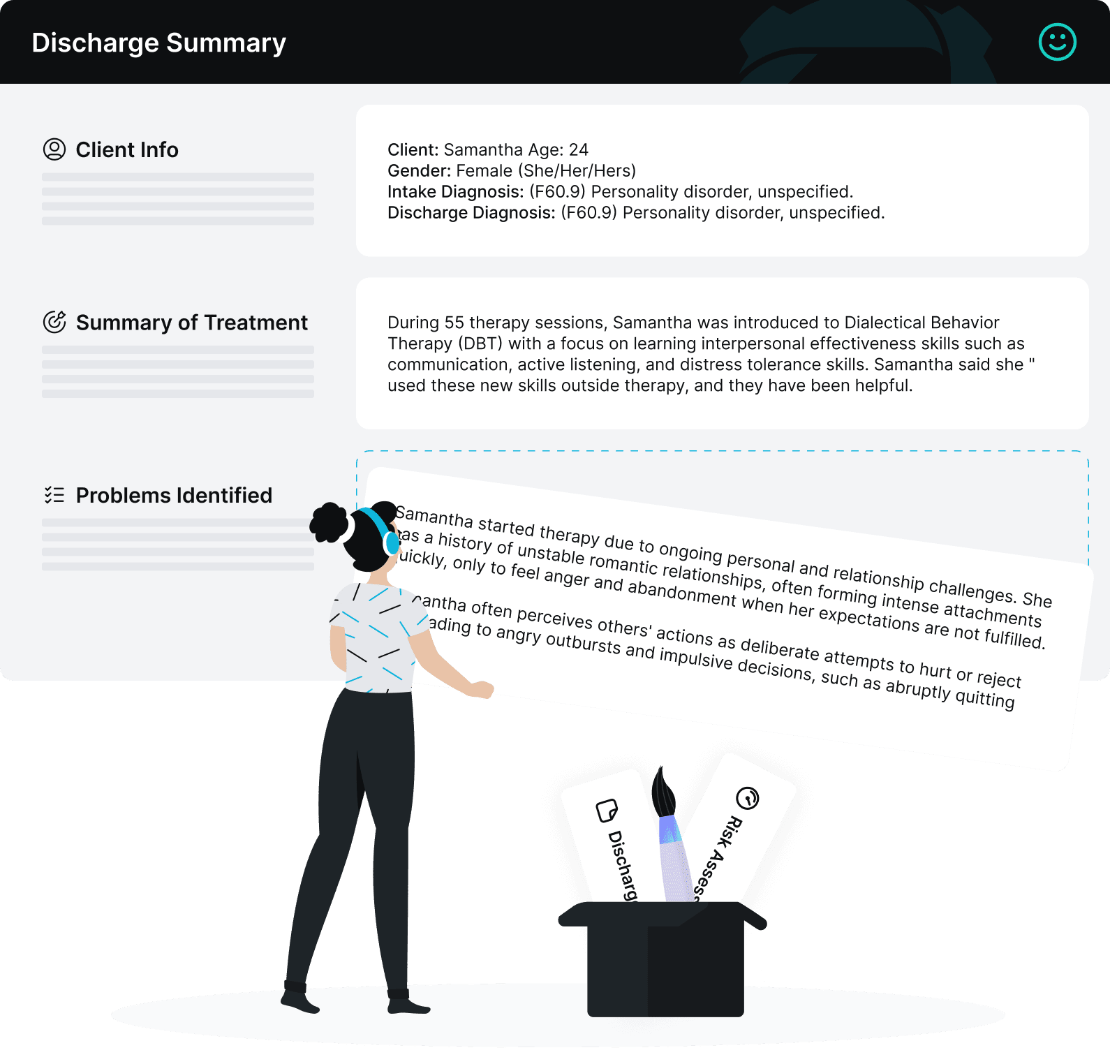 By using AutoNotes to document EMDR sessions, therapists can effectively manage their documentation tasks, allowing them to focus more on the therapeutic process and less on paperwork. The AI-enhanced capabilities of AutoNotes ensure that the documentation is not only quick but also precise and reflective of each session’s unique aspects. This approach highlights the therapist’s essential role in evaluating and adjusting the content of the notes to align with professional standards and specific therapeutic goals.